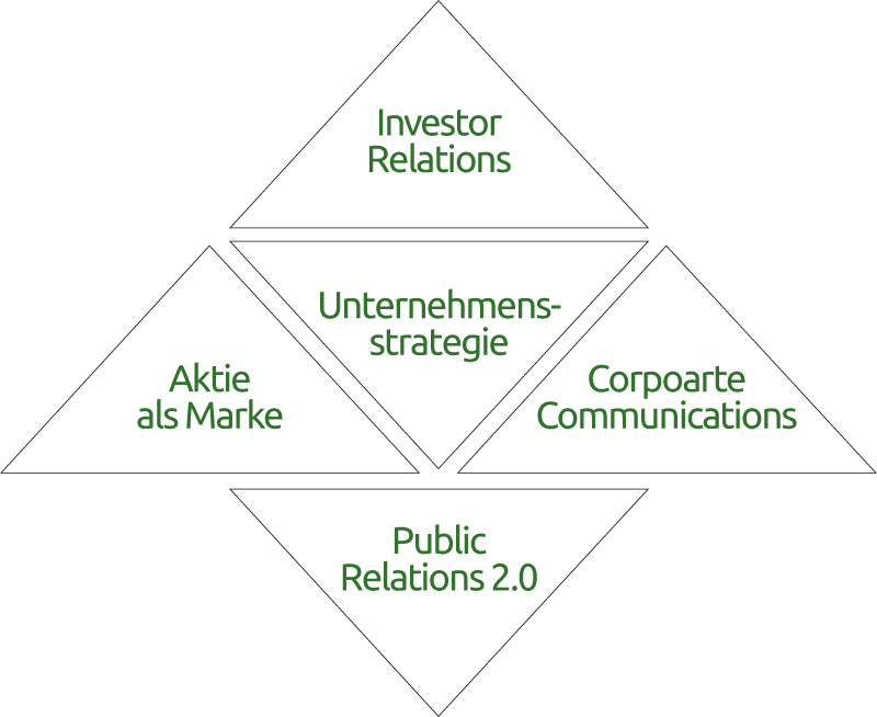 Das von PR Partner entwickelte Modell der „Integrierten Finanzkommunikation“ nutzt bewusst die Stärken benachbarter Disziplinen für den Dialog mit Investoren, Analysten, Finanz- und Wirtschaftsmedien. Das Portfolio der eingesetzten Instrumente folgt konsequent den Aufgaben und komplexen Herausforderungen der Unternehmen in allen relevanten Märkten und Handlungsfeldern.
